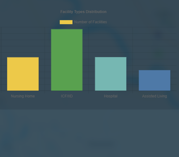 View the important overarching data of the filtered facilities, and see a breakdown of facility amounts by type.